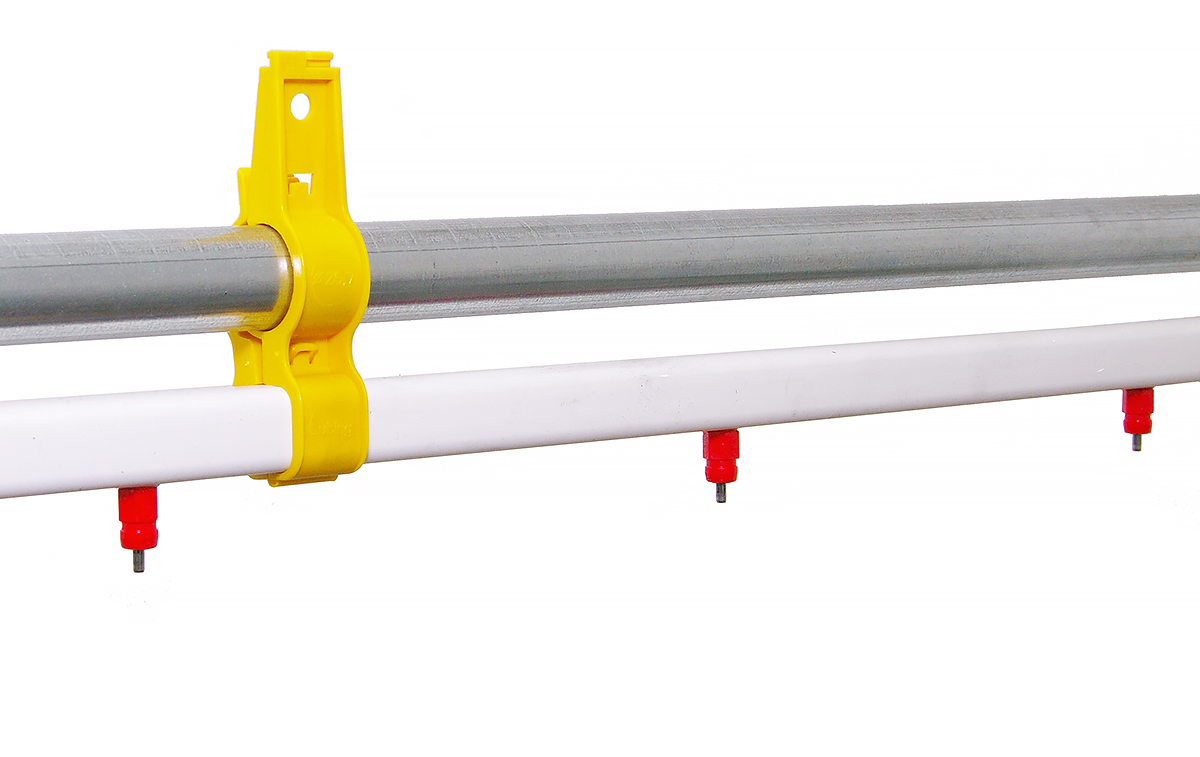 The offered automatic watering line for poultry has a length of 2 meters. However, it can be freely combined into a more complex system of watering chickens thanks to pipe fittings that have been added to the set. This poultry watering line can be supplied from a hopper of any capacity or from a water main. If the watering system for poultry will be supplied directly from the water supply, it is necessary to use at the beginning of the line pressure reducer, because niples are adapted to work at a maximum pressure of approx. 20-30cm water column.