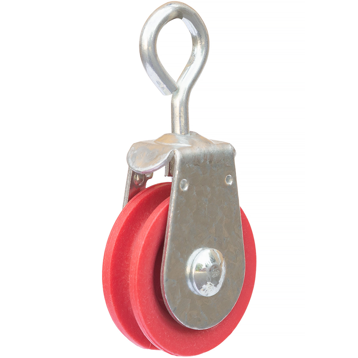 The hanging block wheel is made of solid plastic resistant to loads. What's more, the block has a grooved guide, thanks to which the cable is stabilized and does not slip. The rotating guide of the suspension block also protects the rope used against possible abrasion.