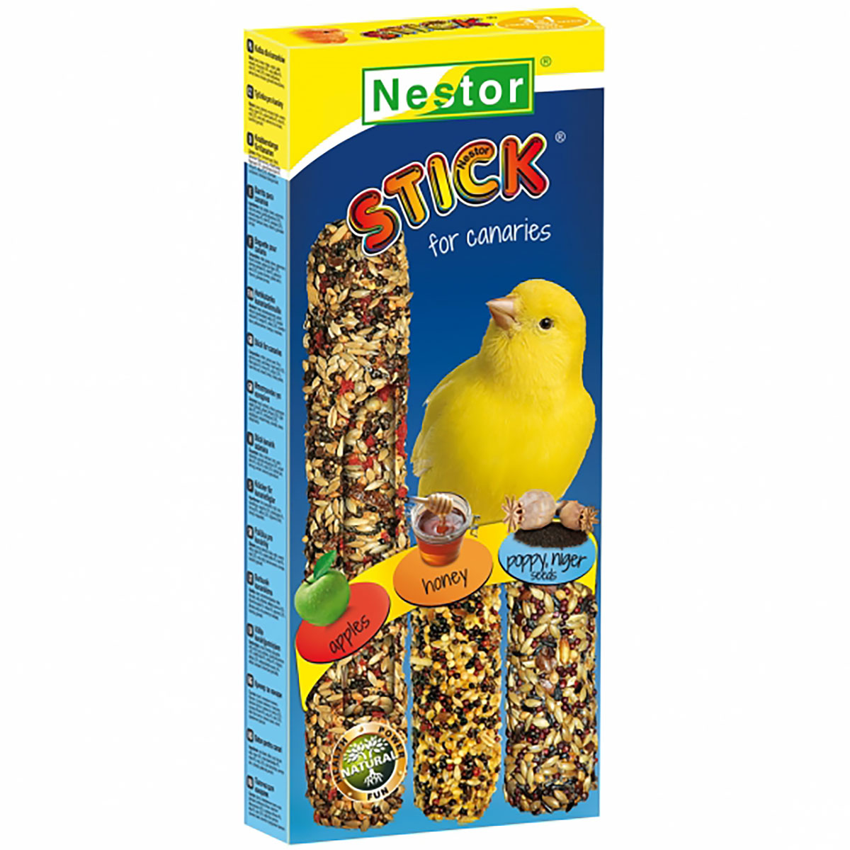 Canary cob 3in1 apples, honey, poppy seeds and ebony NESTOR is a unique form of food that provides your birds with a tasty meal and valuable nutrients. This innovative flask combines a variety of botanicals that are an excellent source of protein, fat, vitamins and minerals necessary for the healthy development and daily activity of your canaries. The NESTOR pack contains 3 flasks in different flavors, allowing your birds to try out different flavors and varieties, adding variety to their daily diet.
