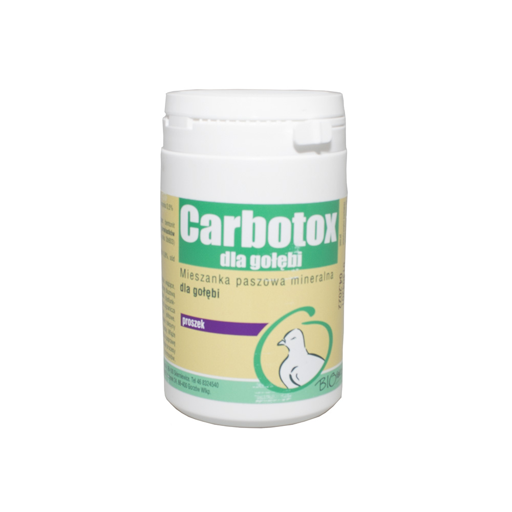 Carbotox pack of 100 g, is a preparation designed to fight diarrhea among pigeons. It is a complementary mixture in the form of a powder, showing stabilizing effects. Also recommended for administration in case of any food or chemical poisoning. Properties of Carbotox: