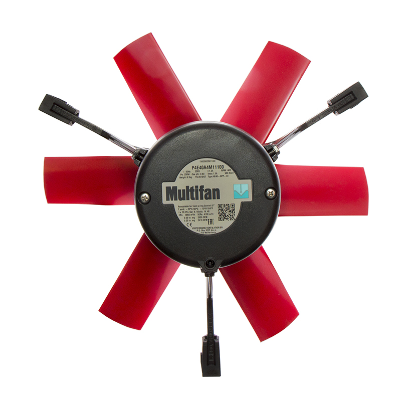 The wings of the presented Multifan fan are made of high quality nylon and polypropylene mixture. These materials ensure quiet operation of the fan blades, while maintaining very good performance of the device. The engine housing and supports are made of aluminum. All components can be cleaned under high pressure with disinfectant additives.