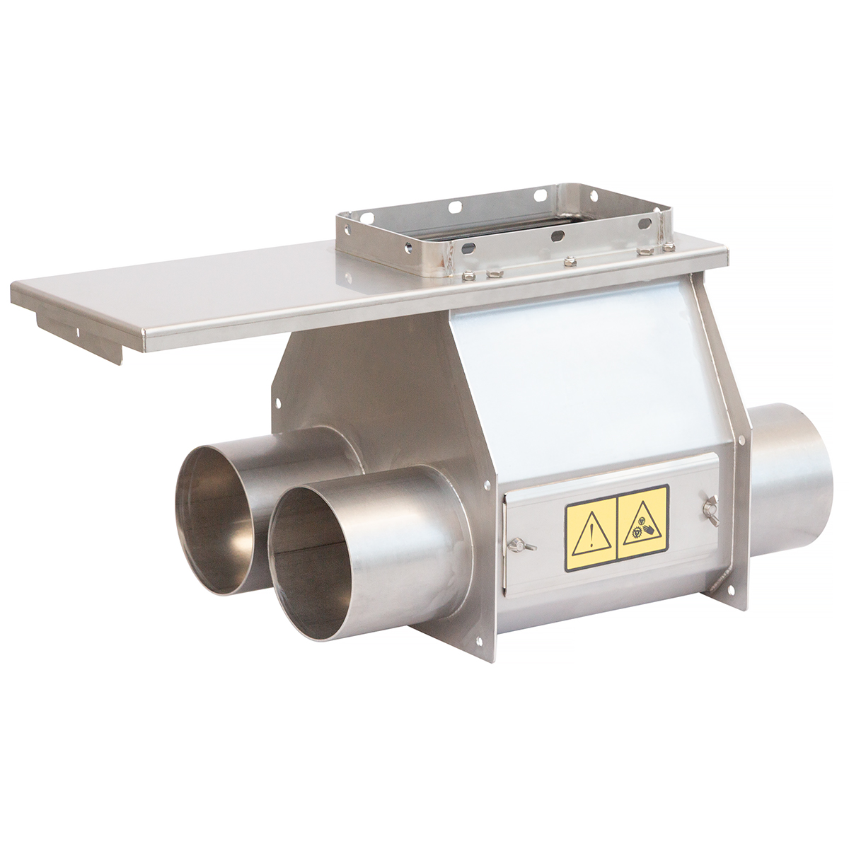Season double stainless steel pipe for pipe fi 125 mm, dedicated to the transverse feeding line for poultry and pigs. The double yoke fi 125 mm is used when transporting feed from two silos to two livestock buildings at the same time.