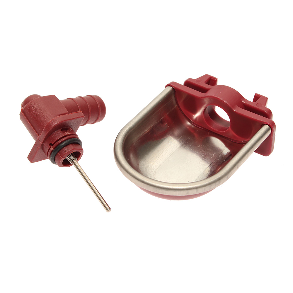 Drinker for rabbits with stainless steel bowl and niple angle plug for hose 10 mm, mounting on a cage