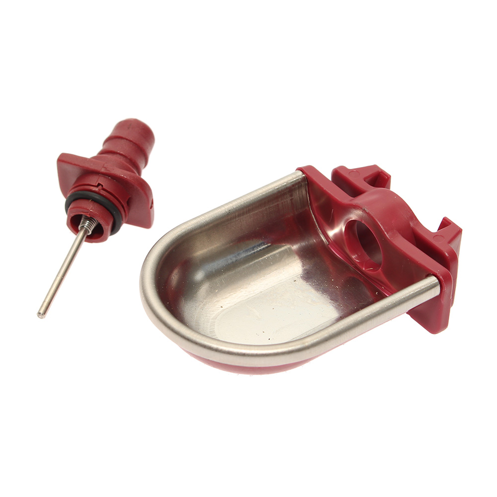 Drinker for rabbits with stainless steel bowl and niple straight plug for hose 10 mm, cage mounting