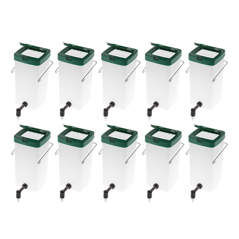 A set of 10 pieces of droplet drinkers with a capacity of 1l. Drinkers are perfect for breeding rabbits, as well as other fur animals, i.e. chinchillas, ferrets or minks.
