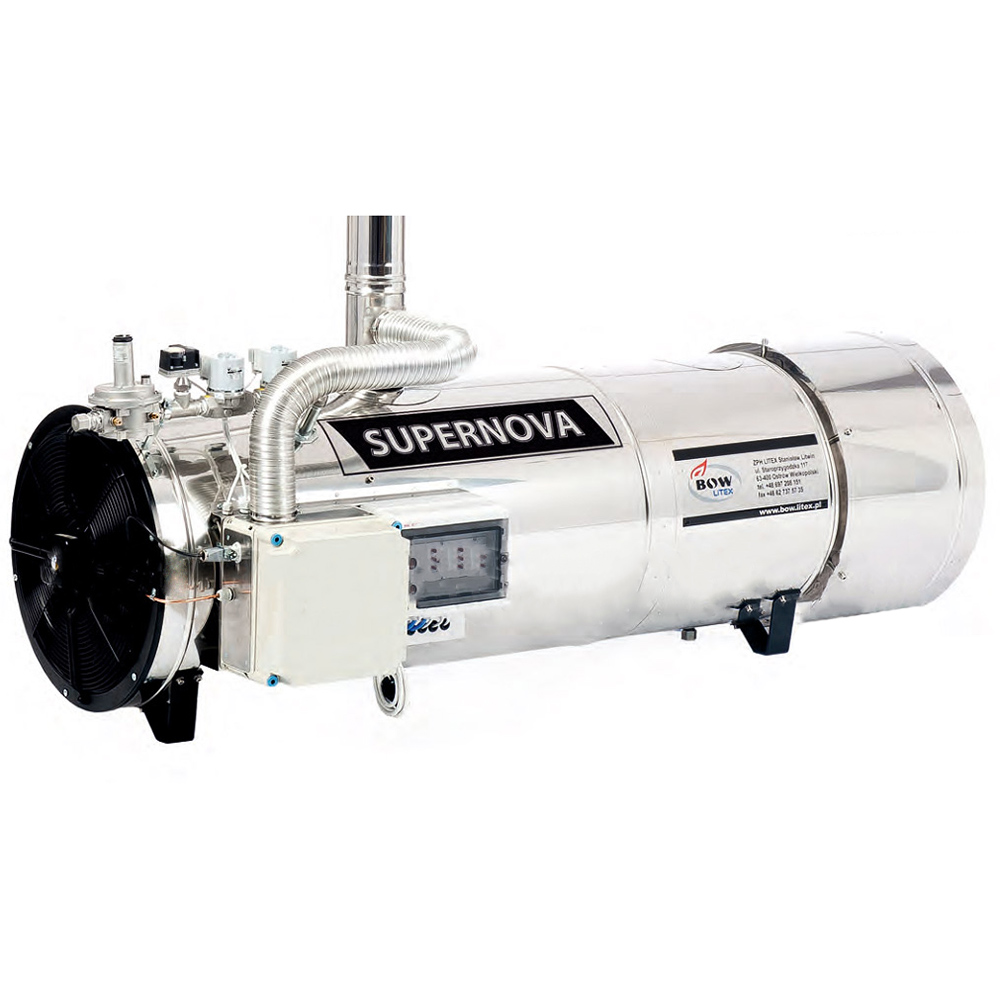 The SUPERNOVA gas heater for the chicken coop is made of stainless steel and is characterized by ip44 housing protection. The device meets CE standards and has the PN-EN 1020 certificate. What's more, the gas heater with a closed exhaust chamber has been equipped with many protections that additionally guarantee reliable and reliable operation of the device, m.in the flame control system, exhaust gas flow, gas pressure in the power supply system or fan operation.