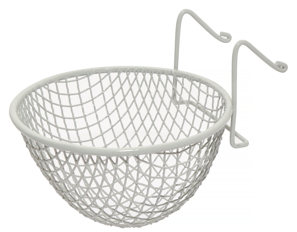 The nest for hatching chicks has a diameter of 9cm and a depth of 6cm. At the edge, it is reinforced by a steel hoop connected to handles for hanging the nesting bowl on the grate of a welded cage with canaries. Hanging handles are at intervals of 6cm, allow you to fix the nest for nymphs on virtually any type of net or front panels for exotic birds.