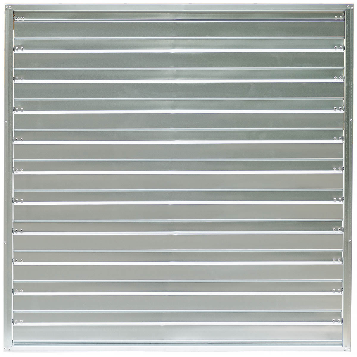 Gravity blinds are made of galvanized steel. To the frame on one side are attached tilting slats of the blinds, on the side of the blinds there is a connection for the servo motor. The whole has a size of 138 x 138 cm. The product is sold without a protective mesh from a welded grille.