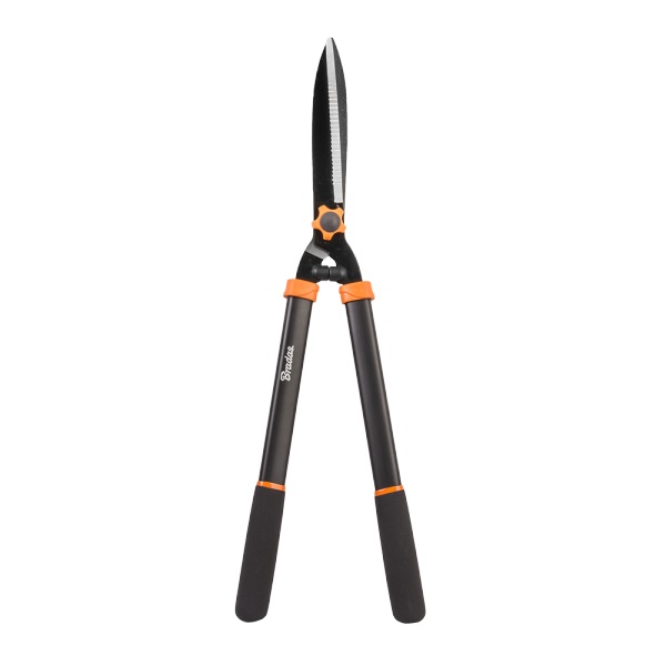Secrator with straight blade total length approx. 63 cm. Shears are irreplaceable for hedge care. The hedge pruner is very convenient to use. It has long arms that allow you to trim greenery that is located high or to which access is difficult. Thanks to the handle finished with a non-slip coating, the hedge haircut runs smoothly and comfortably. The hedge trimmers are made of steel, while the handle is made of plastic-coated aluminum. The whole is very durable and resistant to difficult weather conditions. Parameters: