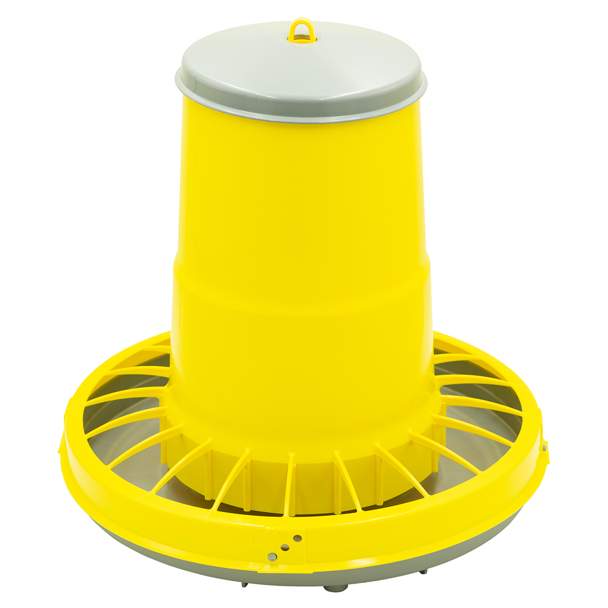 Large feeder for poultry with a capacity of approx. 15kg. It works well for loose feed and grain. Due to the capacity, it can be used in the backyard corral, as well as on the farm.