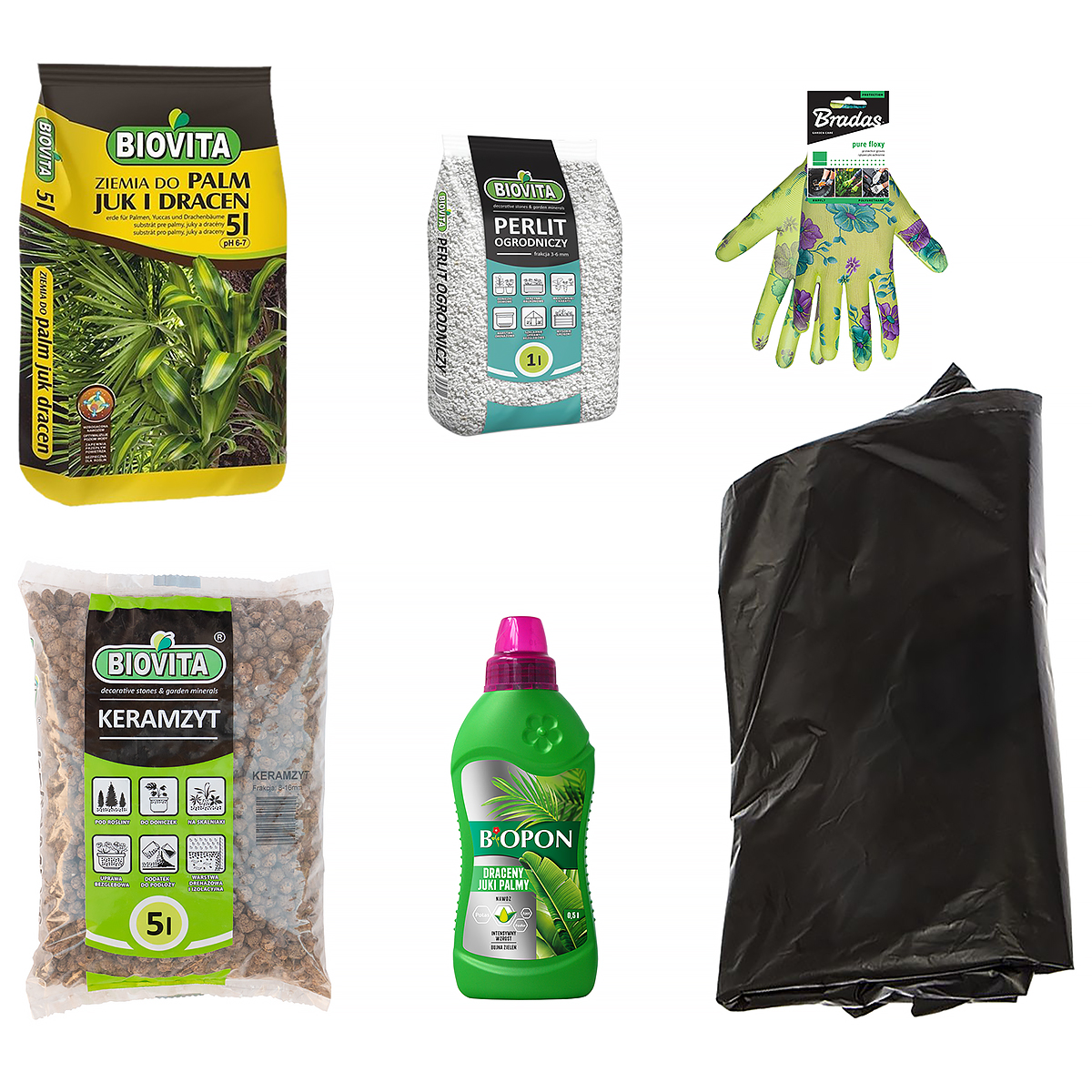 - Women's protective gardening gloves size 7 1. Palm soil 5 l Biovita is enriched with perlite, which aerates the soil. The composition of the presented soil guarantees the proper growth and development of palms, yucca and dracaena.