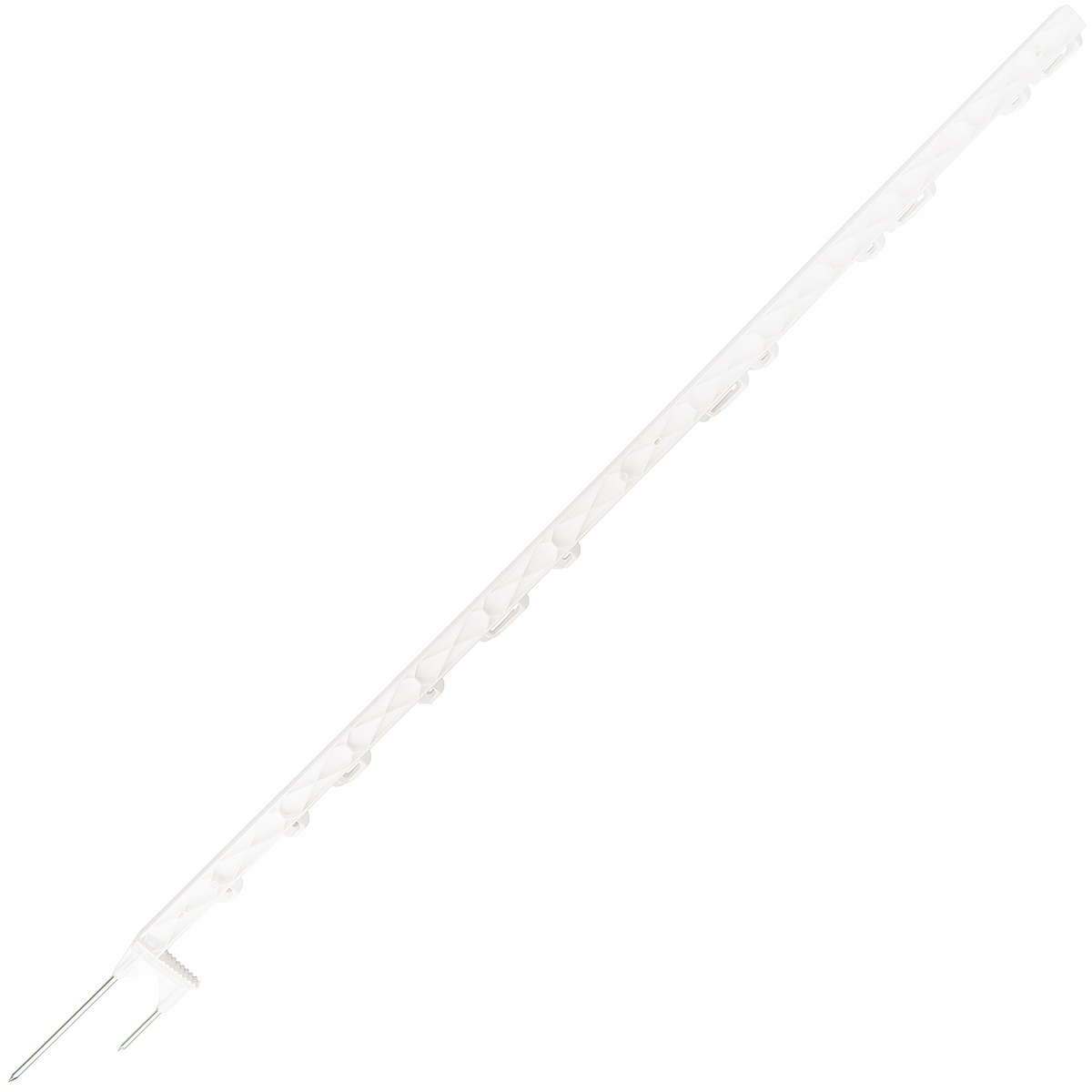A column for an electric fence with two tips that stabilize the stake in the ground. Its height is 157 cm, thanks to which it is perfect for fences for horses and wild animals, i.e. roe deer, deer, elk. The fencing's stake has 12 wire mounts. 7 of them have been adapted to conduct links, plelet or wire. Through the remaining 5 hooks you can run tass. Thanks to the double tip, the stakes hold steadily to the ground. They are recommended to be used wherever they occur unevenness of the terrain and the risk of strong animals entering the fence line. The high stake for horses is made of very durable plastic. It can also be used during negative temperatures.