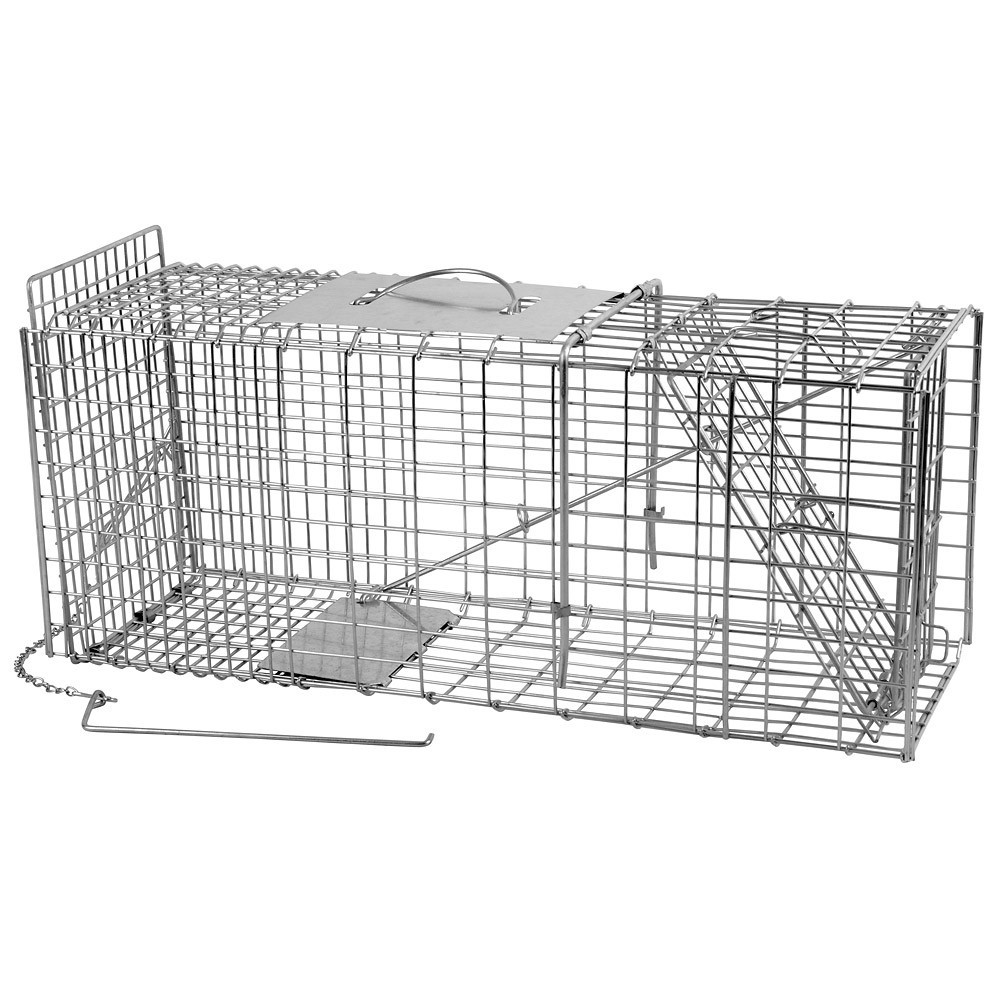 A solid and durable trap for martens, weasels or polecats live catch designed to control pests in homes, gardens, chicken coops or aviaries. The cage has dimensions of 68x24x31cm. It is made of stainless steel wire, in addition, the steel is covered with a protective layer of zinc. It is a single-entry type cage.