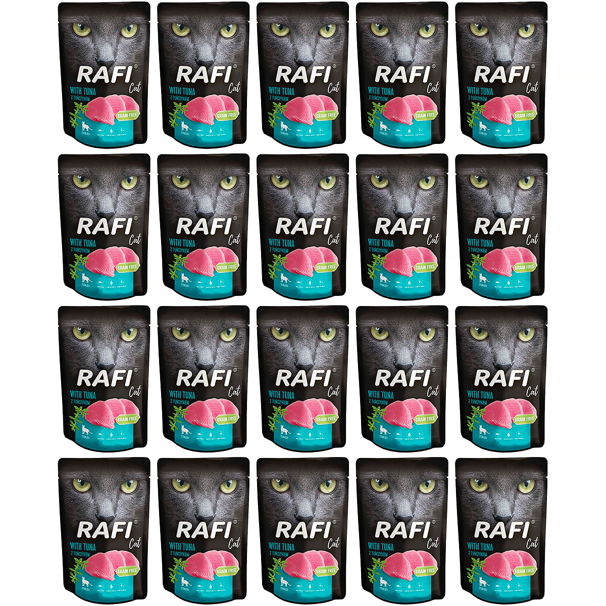 Rafi wet cat food with tuna 20 x 100 ga is an excellent choice for your pet, providing not only an intense taste, but also a wealth of nutritional values. This complete meal has been carefully formulated to meet your cat's specific needs, especially those that require a wholesome diet based on healthy ingredients.