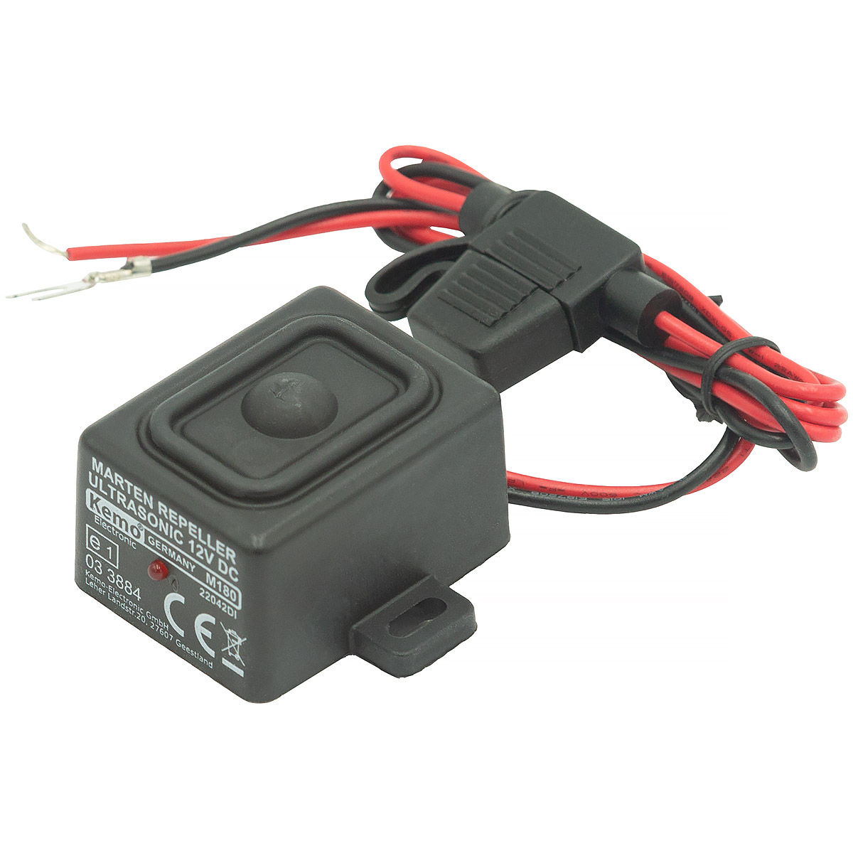 Ultrasonic repeller of martens designed for installation under the hood of the car. Extremely useful in cases where we have a problem with martens gnawing through car cables. The repeller generates ultrasonic sounds that are unbearable for these pests, as a result of which they stay away from the source of these sounds. The device is powered directly from the car's battery.