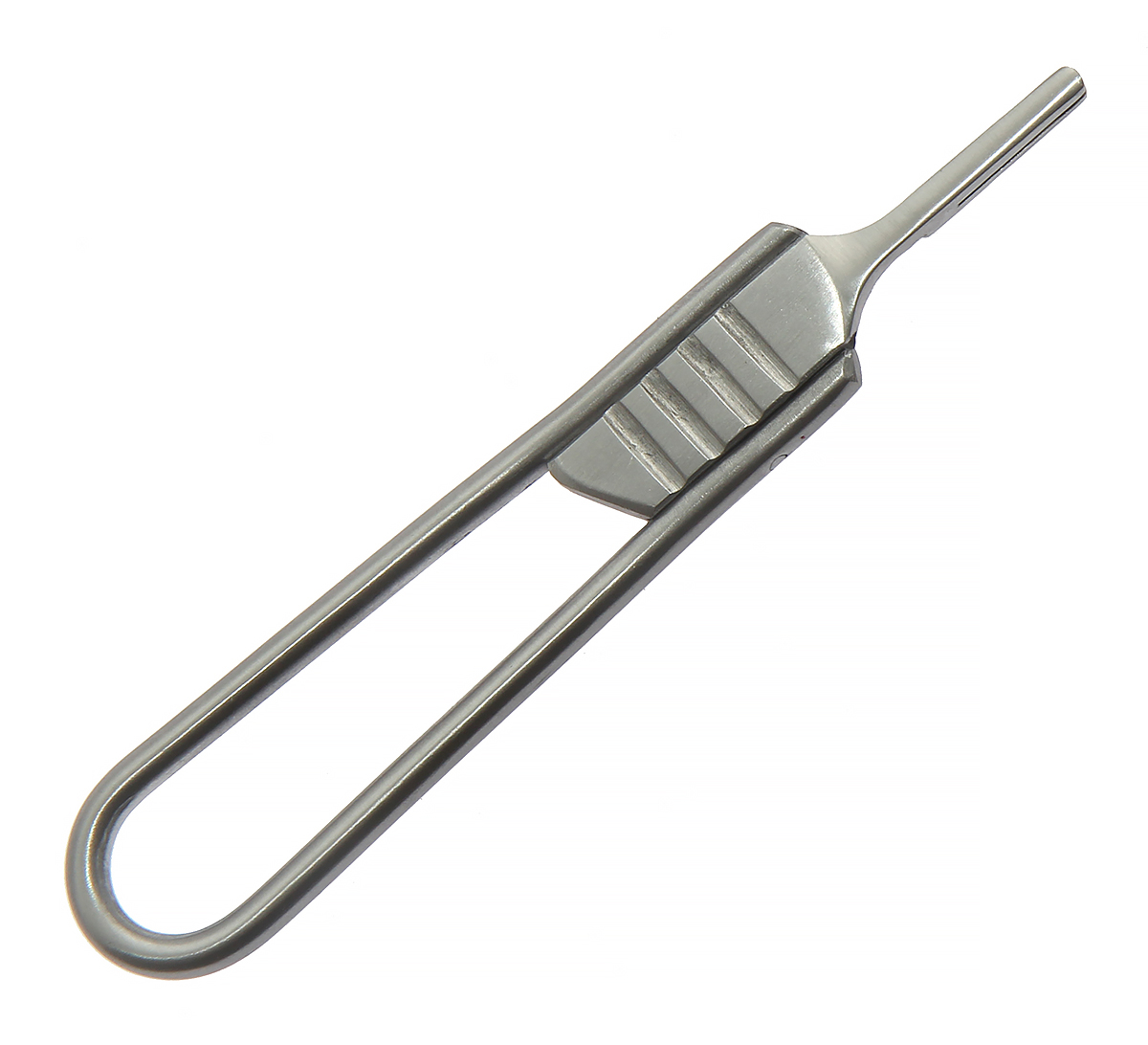 The scalpel holder is a very useful tool when we need to quickly perform surgical cuts on sick or injured animals. It allows us to quickly and precisely perform the procedure without the need to waste time on the preparation of traditional tools. It can be used as a surgical knife in the efficient execution of many veterinary activities such as castration procedures, excision of suppuration, cleaning of an infected wound or removal of the parasite.