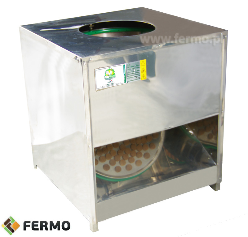 All internal elements of the poultry skubing machine, i.e. the drum and the spinning disc, are made of hardened aluminum, thanks to which they are very easy to keep clean, dirt does not adhere to the walls, and the material itself does not undergo the rusting process. On the other hand, the outer casing as well as the entire structure of the machine is made of noble stainless steel type 302 additionally enriched with nickel for better corrosion resistance. This universal plucker was equipped with a three-phase engine with a capacity of 1.1 KW (or 1.5HP). Up to 10 poultry with a total weight of up to 12Kg can be plucked at a time. The nibbling machine has CE quality and safety certificate.