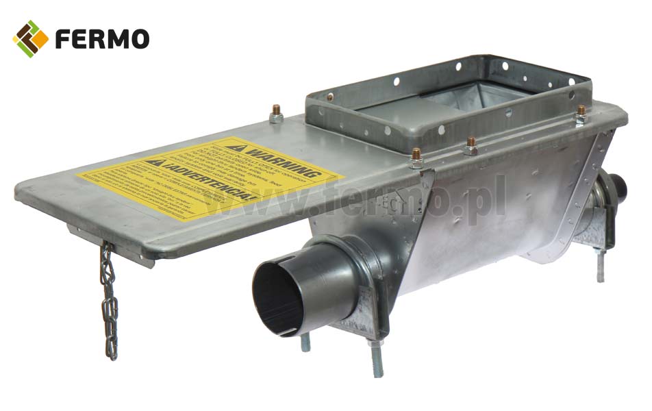 The silo yoke has a mounting hole under the per-transparent chute shoe with a dimension of 26 x 16 cm. Galvanized yoke for the chute basket has an inspection hole that facilitates access to the inside of the housing, i.e. to the shaft and spiral.