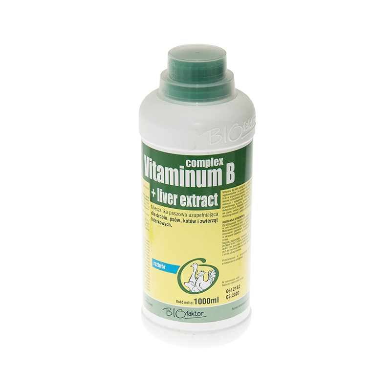 Complex of B vitamins with an extract of natural ingredients of animal origin. The preparation is dedicated to poultry, as well as dogs, cats and fur animals. Its systematic dosage allows you to take care of the proper condition and development of animals. The preparation consists mainly of B vitamins and amino acids, which play an important role in the metabolism of carbohydrates, proteins and fats. Vitamin deficiency leads to many dangerous diseases, which include, m.in, anemia, charlatanism, liver disease, heart muscle. Vitamin B1 contained in the preparation contributes to: