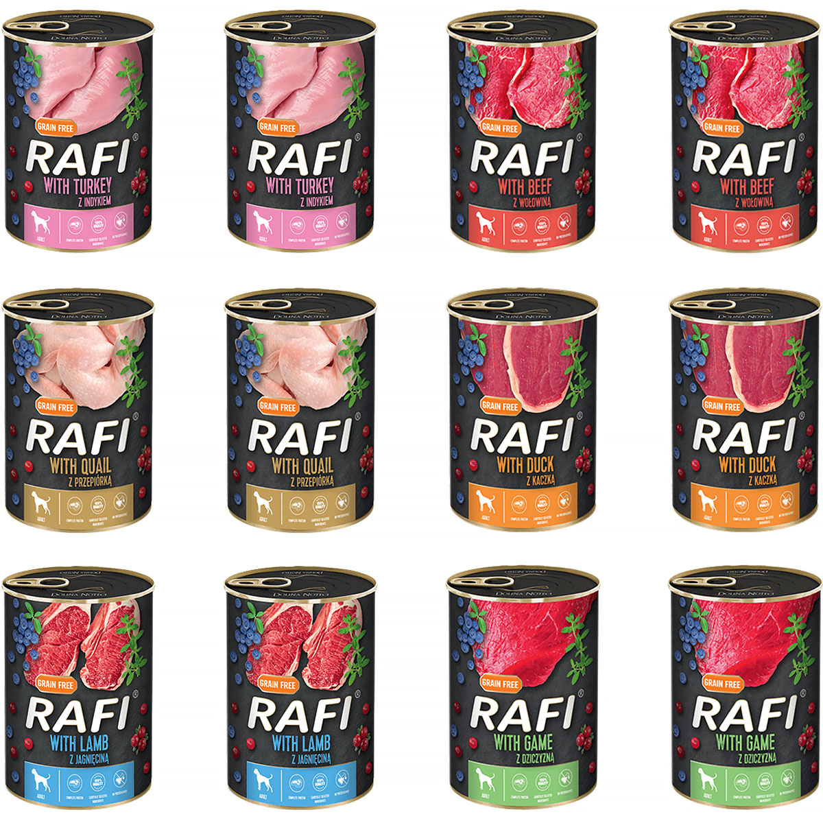 Wet dog food RAFI mix 6 flavours 12 x 400 g