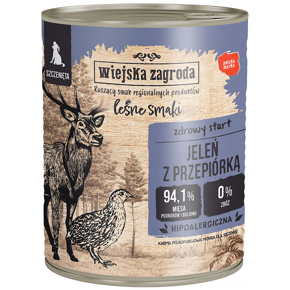 Wet dog food Wiejska Zagroda Leśne Smaki Deer with quail 800 g puppies