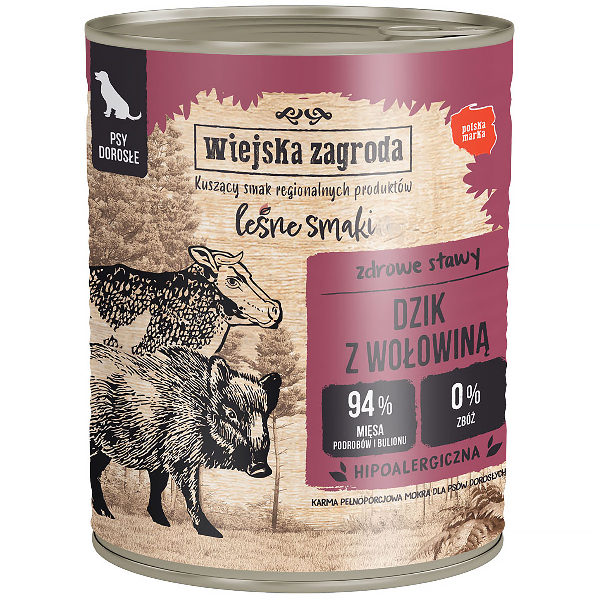 Wet dog food Wiejska Zagroda Leśne Smaki Wild boar with beef 800 g adult dogs